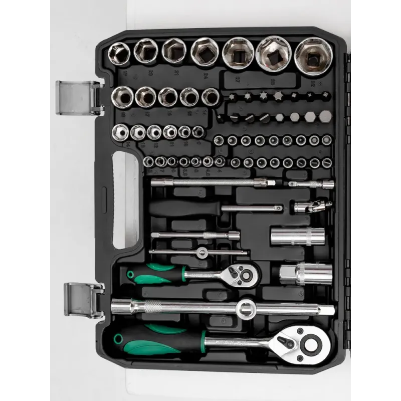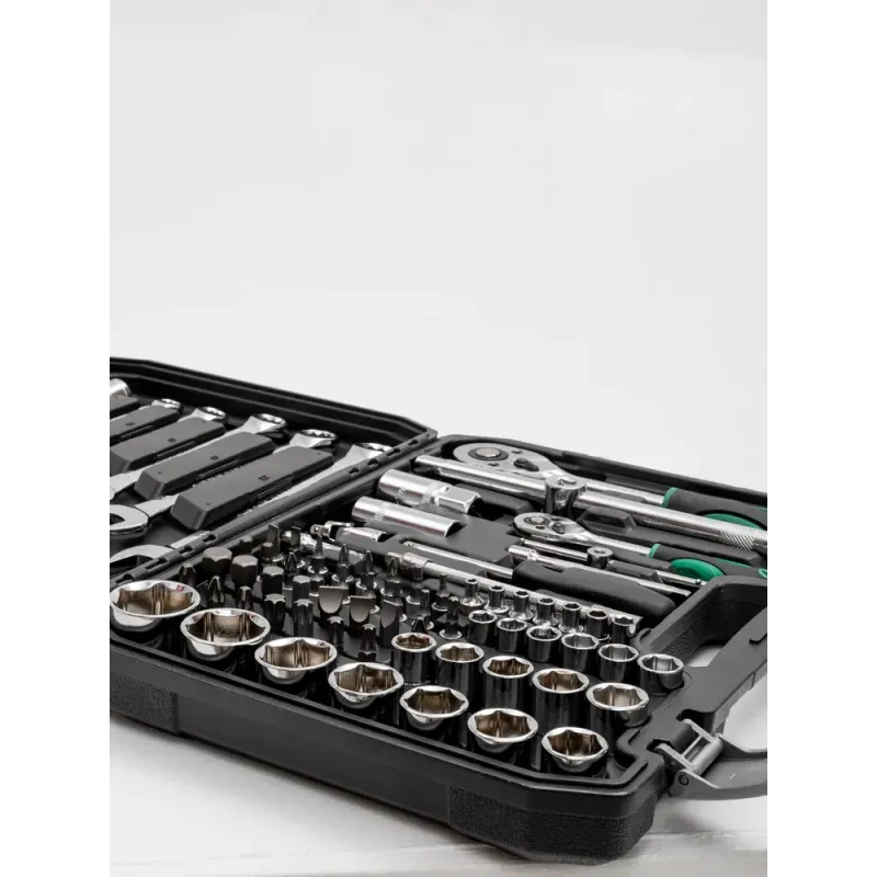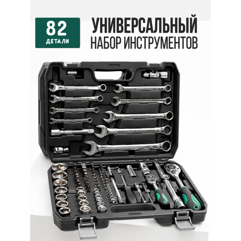 Универсальный набор на 82 предмета, состоящий из наиболее нужных инструментов поможет справиться на отлично с ремонтом автомобиля и др. транспортных средств. Пригодится в домашнем ремонте при для затяжке болтов и гаек, при сборке мебели. Набор упакован в прочный пластиковый кейс. Компактный - занимает очень мало места. Замки на кейсе надежные и в тоже время просты в отстегивании. Подойдет в качестве подарка второй половине, мужу, молодому человеку.